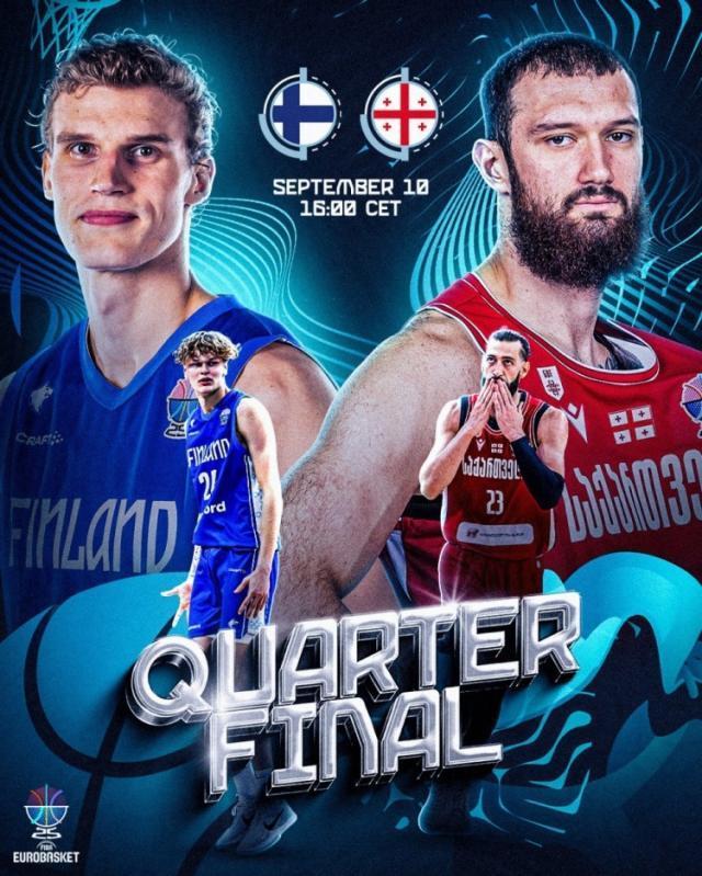 男篮欧锦赛1/4决赛下半区开打,芬兰男篮和格鲁吉亚男篮迎来对决。首节开局格鲁吉亚男篮打了8分钟的好球,期间他们和芬兰拉锯势均力敌,但这之后芬兰男篮多点开花,他们先在节末2分钟里送上12比2的攻势确立起两位数领先;次节格鲁吉亚进攻端保持不错状态,奈何芬兰手感热到发烫,上半场马尔卡宁+扬图宁+沙林+马克舒尼四人合力22中17,而格鲁吉亚男篮整个上半场也就命中14个运动战进球,芬兰男篮凭借半场60%的命中率和15投10中的惊人三分命中率拿到17分的领先。休息归来芬兰手感骤降,格鲁吉亚在扛过前三分钟里仅得2分的窘境后迅速反弹并在随后送上20比9的攻势追至个位数燃起希望,不过最后时刻瓦尔托宁连续命中两记三分帮助芬兰重新拉开比分奠定胜局。最终,芬兰男篮93比79击败格鲁吉亚男篮。