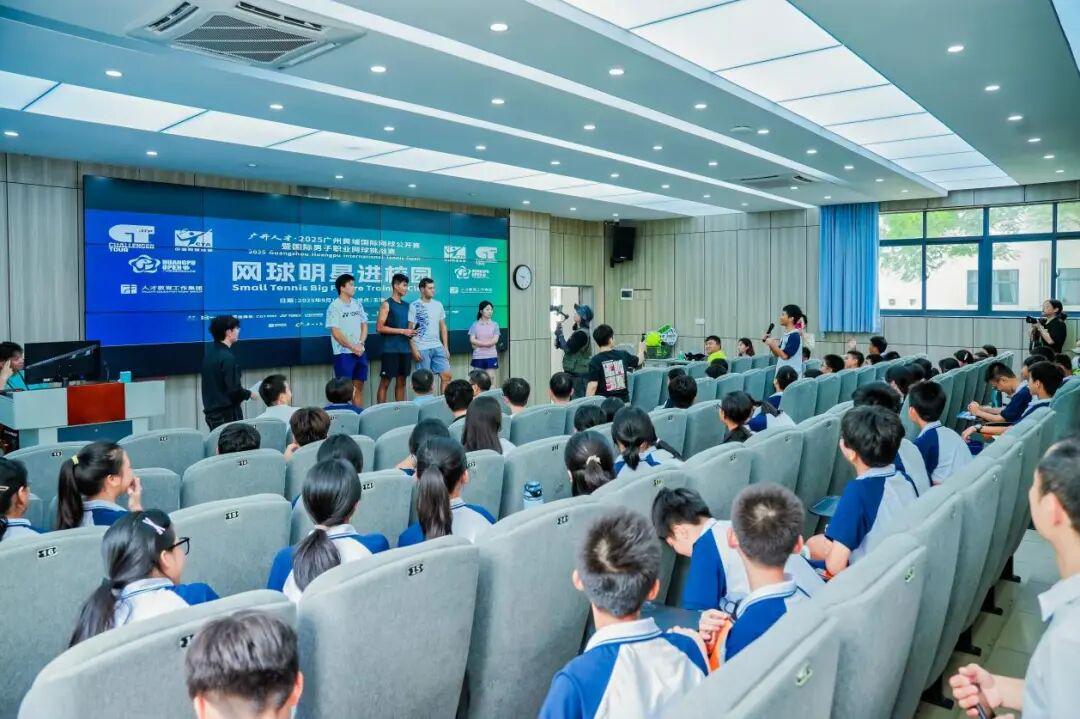 9月10日,正值教师节之际,广开人才·2025广州黄埔国际网球公开赛暨国际男子职业网球挑战赛ATP100的特别环节——“网球明星进校园”活动在玉岩中学开展。三名国际网球球星走进校园,与学生们零距离互动,在挥拍之间传递体育精神,更以别开生面的方式向辛勤耕耘的教师们致以节日的敬意。