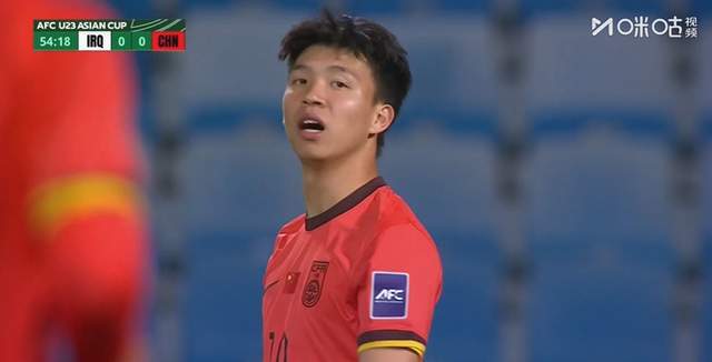 第54分钟,杨希后场断球后转身过人带球长驱直入,一脚将球转移到左侧禁区内,王钰栋跟进直接一脚凌空端射,可惜伊拉克队门将这次作出神扑,单掌将球挡下。这是开场后中国队最好的一次射门机会,太可惜了!