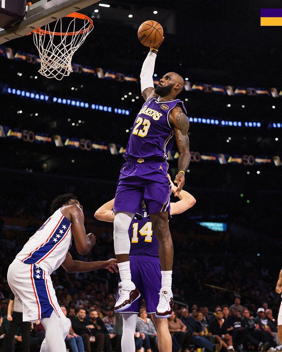 末节决战,湖人抢断,里夫斯轰进压哨三分球。恩比德外线打铁,里夫斯又中远投,恩比德失误,里夫斯2罚全中,场上响起了“MVP”的呼声。埃奇库姆远投打铁,雷迪克挑战判罚成功,范德比尔特送出大帽。范德比尔特连续犯规,马克西抢断詹姆斯后2罚全中。斯马特助攻范德比尔特暴扣,詹姆斯强势上篮得手,紫金军团打出了12比2的攻势,纳斯请求暂停。乌布雷罚进2球,詹姆斯助攻斯马特轰进3分球,马克西抛投取分。