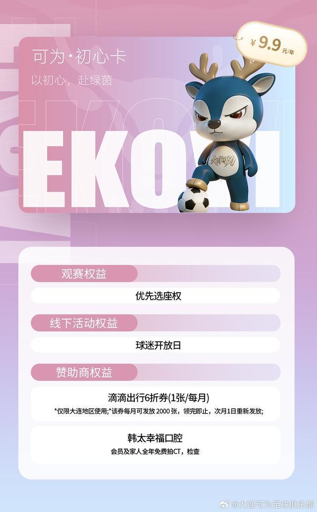 开云体育网页版入口-大连可为上线官方小程序并招募球迷会员,最高价1999/年