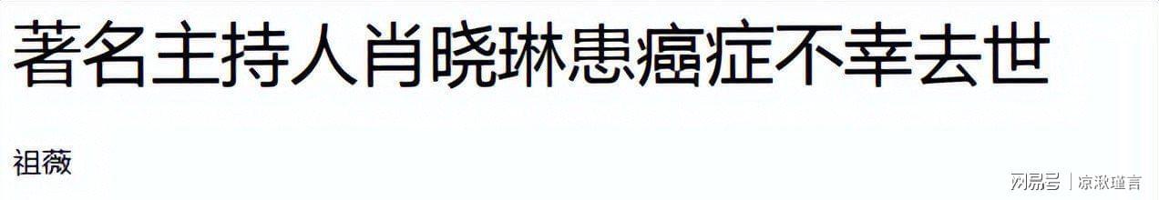 开云体育官方网-央视主持人肖晓琳美国家中去世,临终26字遗言太深刻